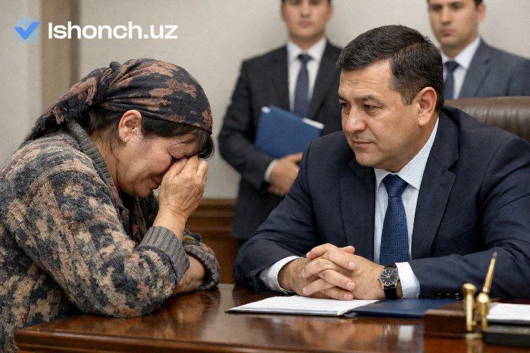 Гулистон туманга янги ҳоким тайинлаганини эшитиб қабулига шошилди. Қаҳратон совуқда эгнига эски жемферини кийиб олди, қўлига кўмир суришни ҳам ёддан чиқармади. Нақ ўн дақиқа кўз ёши тўкди, “Ёлғиз аёлман, бормаган эшигим қолмади, ҳеч ким мени тинглашни истамаяпти” деб дий-диё қилди.